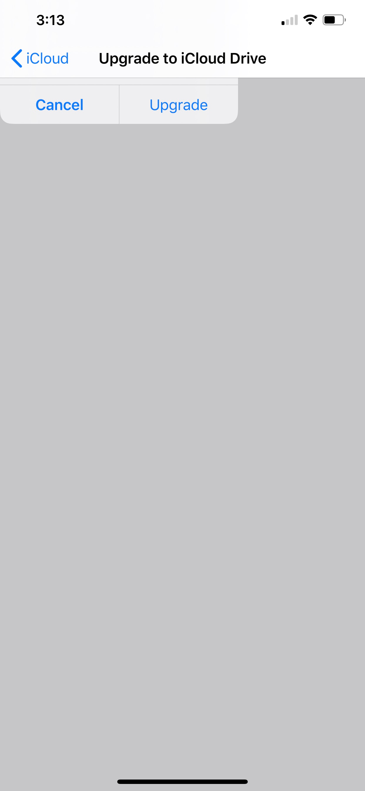 I switched back to using apple devices after 5 years, and my first iphone being iPhone 4s. Recently I purchased an iPad Air and an Iphone XS Max and upon thoroughly checking that my backup to the iCloud Drive isn't working, I realised that my iCloud Drive on both my iPad and iPhone kept turning off automatically. When Turned on, it takes me to the next page where it says either "Cancel" or "Upgrade" of which nothing works when you click them, its just frozen.