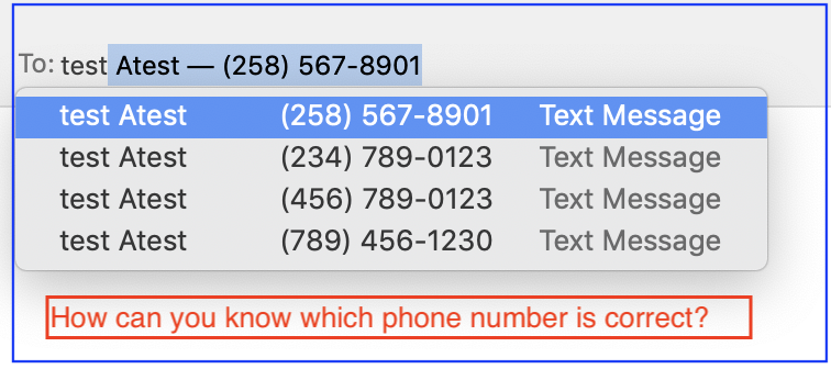 On the Messages app on a Mac, is there an easy way to identify which number to send text messages.