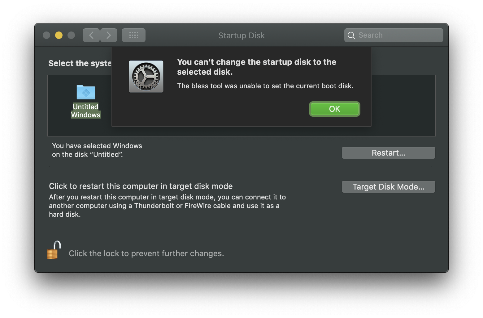 I'm installing Windows on an external drive (Samsung T5) since my computer doesn't have terribly much room for a full Windows install with my productivity and gaming suite. I followed the instructions here, and it did all the right things, except for right now - it doesn't display the startup disk in Startup Disk under System Preferences, or in Startup Manager with the alt + Restart. It was visible in Recovery Mode, however it said "The bless tool was unable to set the current disk". I've changed the security settings in Startup Security Utility to the "all signed utilities" (medium setting) and also allowing external disks, so it should work - but it's just not showing up. What are some steps I can take to troubleshoot this? (I've checked the drive is formatted as NTFS after the Windows install, and all the program files are there - the computer's just not recognising it.)
