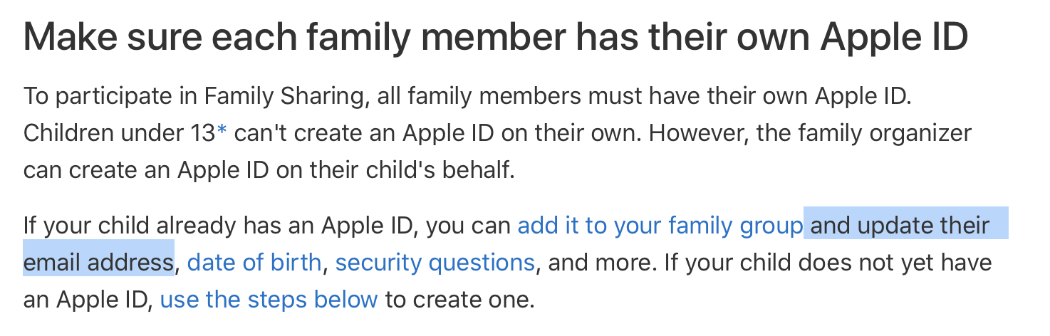 Hi my name is Jennifer and I am trying to update my daughter email to an iCloud email so I can set up the Parent sharing account but it will not allow me to update her email address