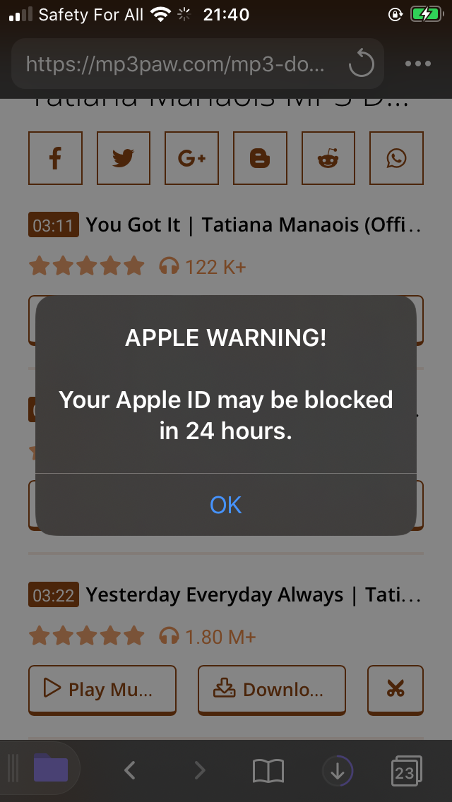 If you provided your Apple ID and password at the bogus site, change your password immediately.