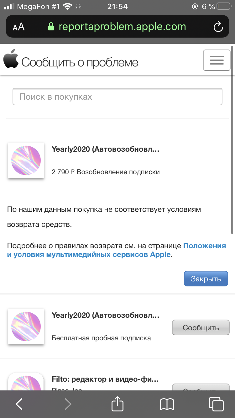 the application was mistakenly bought by my younger sister, was not used. I ask for a refund. But through the settings the operation cannot be completed.