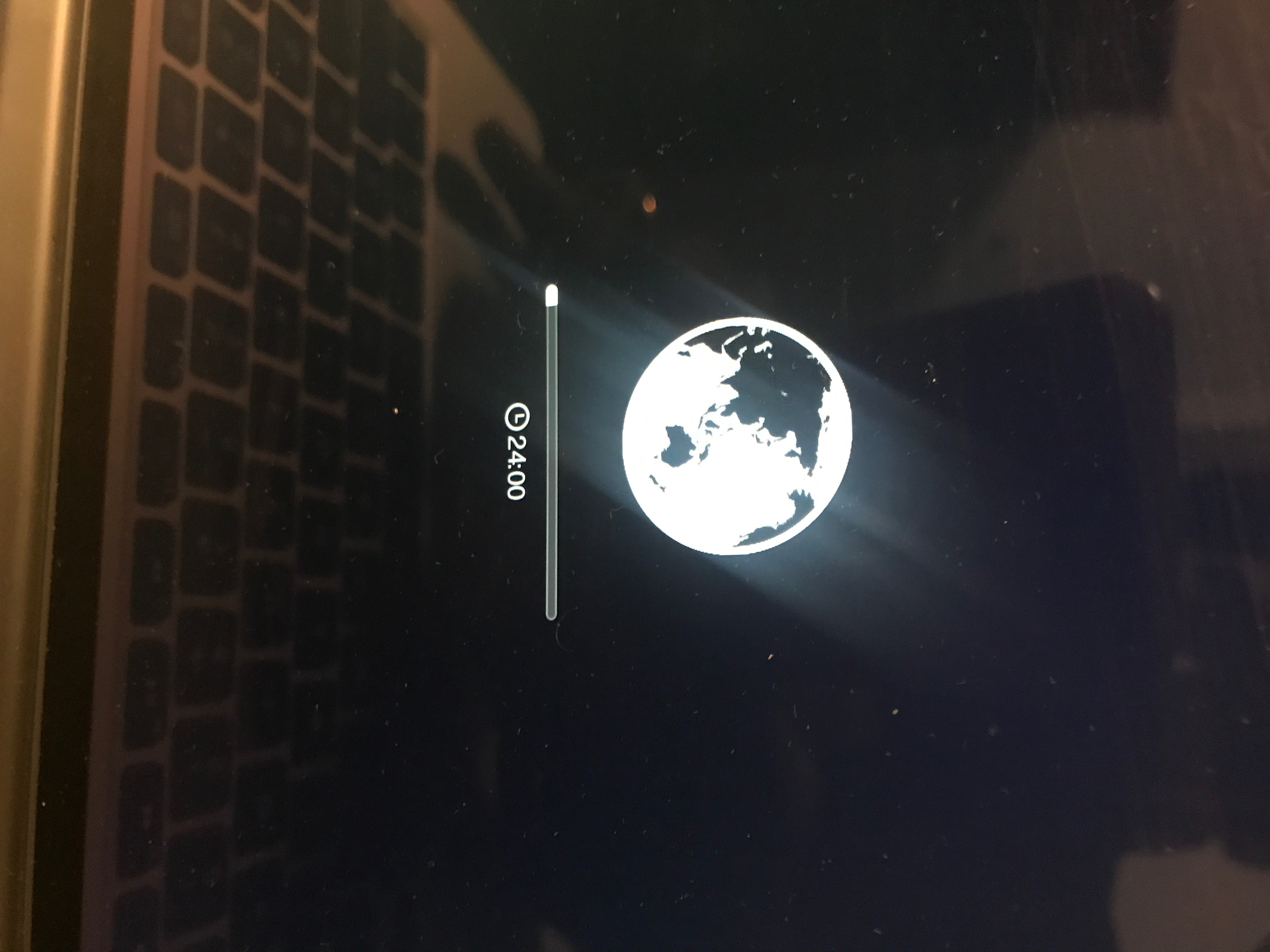 When I reboot I hold command+R. Then it ask me to log on my net work so I log in then it just sit on 24 mins remaining????