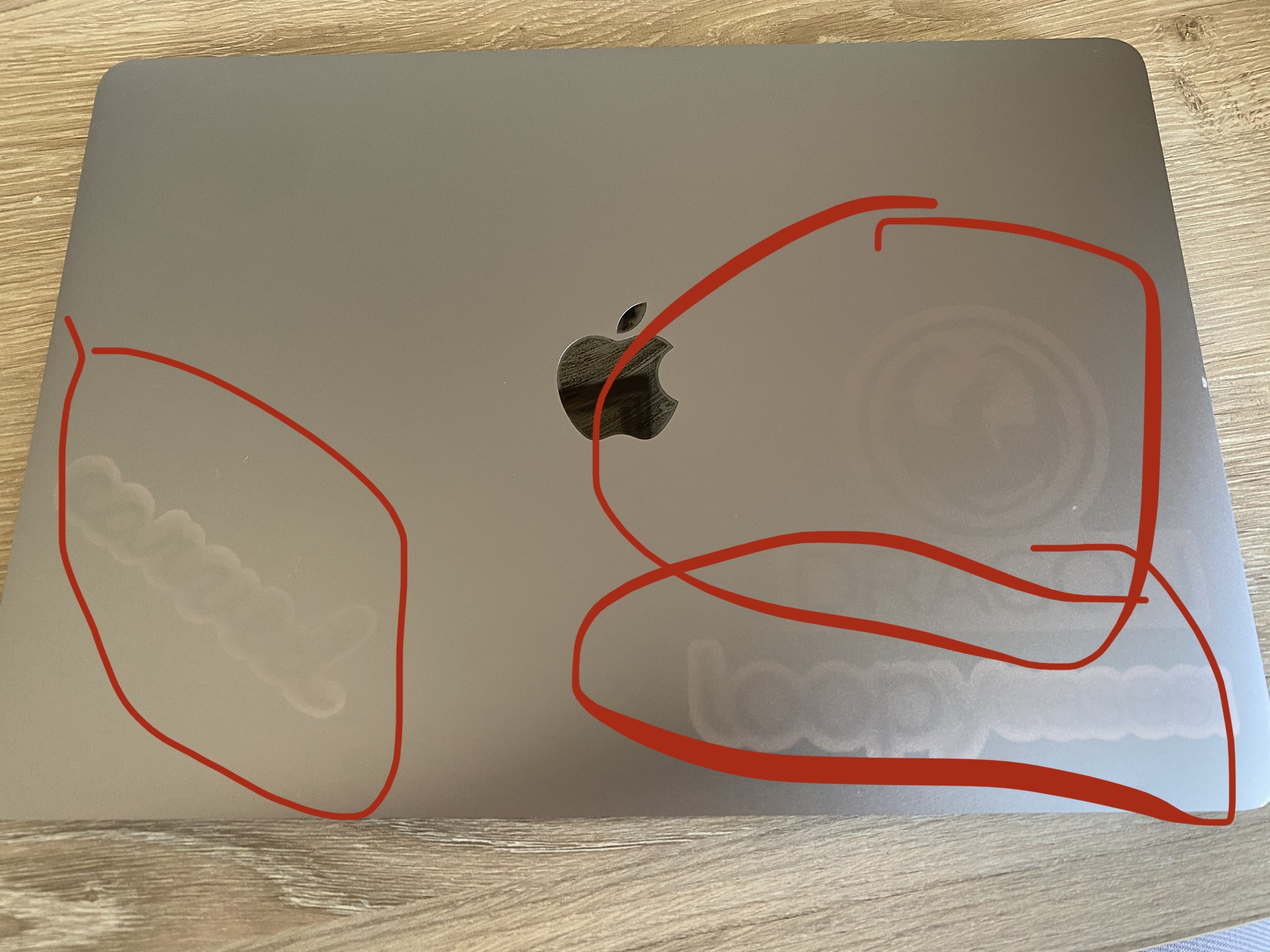 I had stickers on the front cover of my macbook pro. After I removed them, residue imprints are (annoyingly) shown. How can I remove the imprints?
