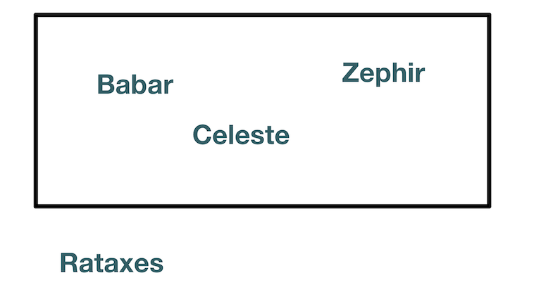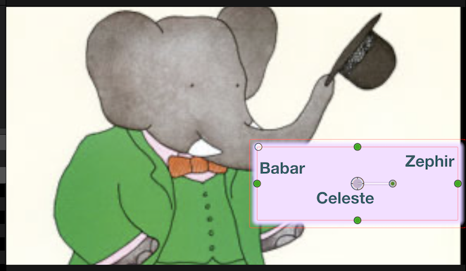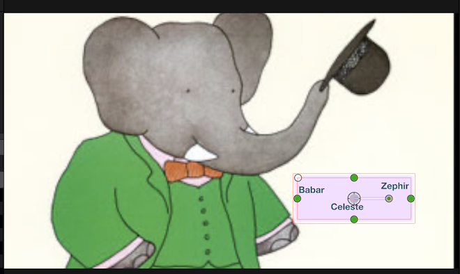 Notice how the contents of the rectangle were scaled up, but the rectangle is still the same size - now showing the word Celeste in a larger size. Go back and adjust if necessary (for instance, here we can still see the edge of the word "Babar" in the corner):