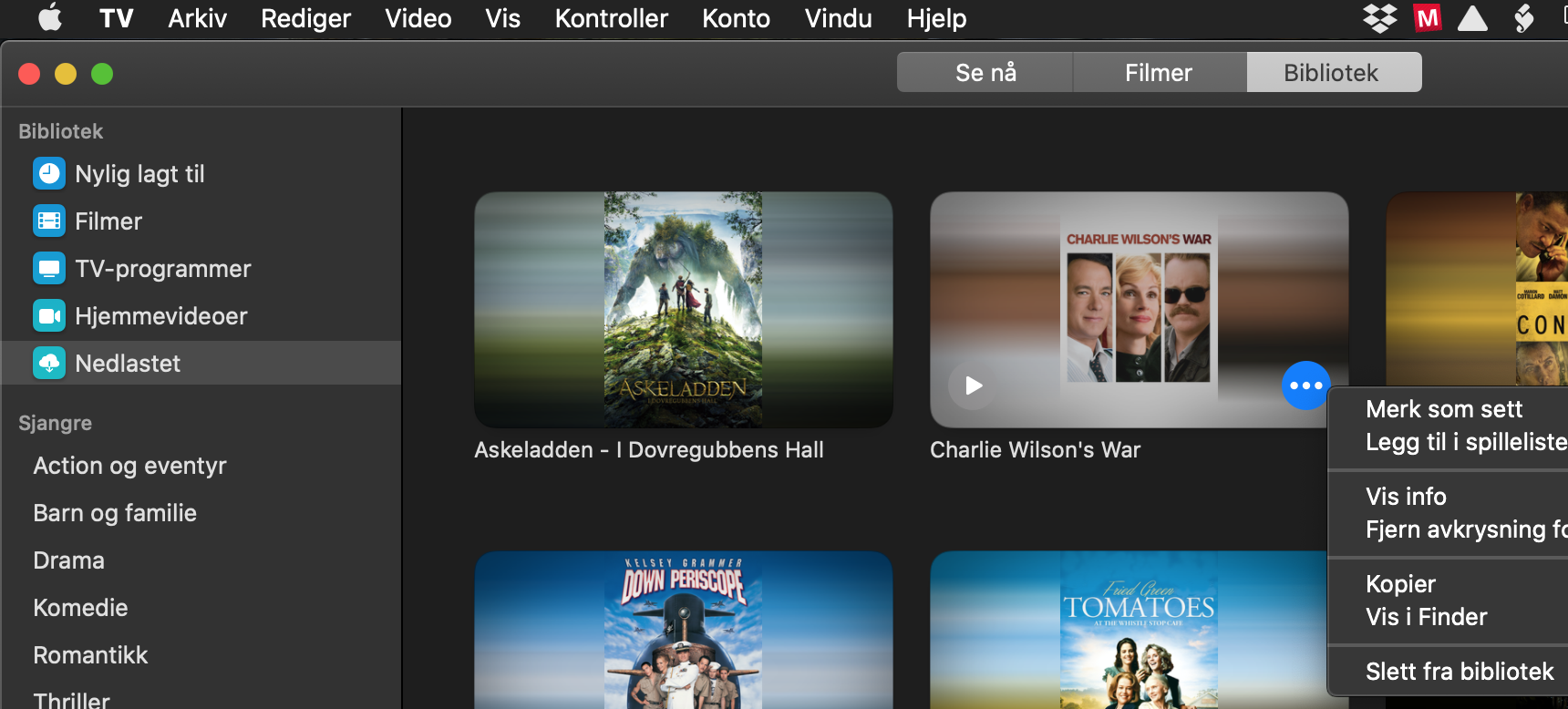 I have downloaded some of my purchased movies to my apple tv app library on my MacBook.