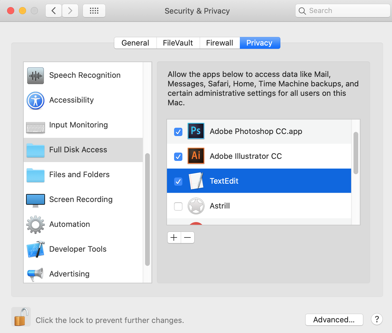 I have granted "TextEdit" the full access to all my "Files and Folders" in "Security & Privacy".