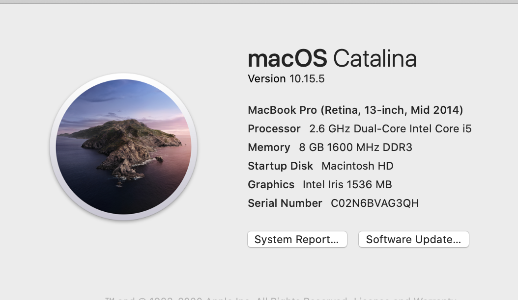I updated my system OS to "macOS Catalina" on July 10th, 2020.