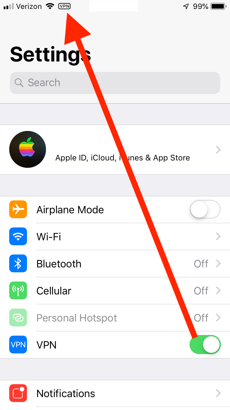 Step 4: Finally, going back in to Settings, the VPN is undesirably, automatically reestablished