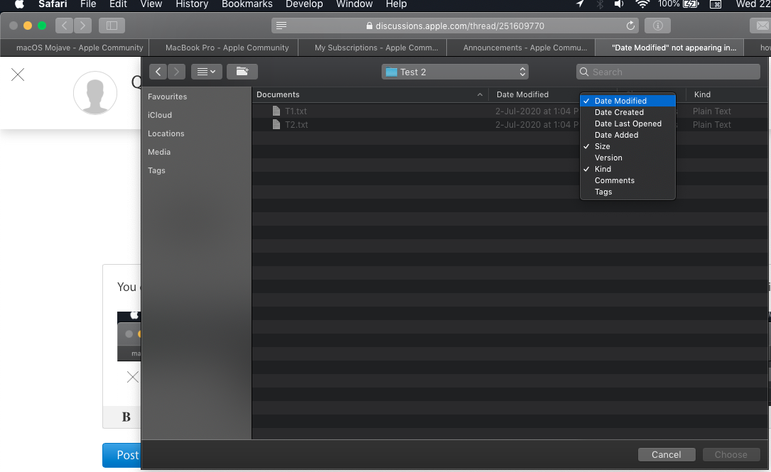 I've recently noticed a change wherein I can't see "Date Modified" in the Finder window (list view) when uploading and downloading files through web browsers (Firefox, Safari, and Chrome). This option still appears in the normal Finder window, just not when I am adding an attachment or whatnot. There is an option to group items by "date modified" but it doesn't show them as a list then (only past day, 30 days, and whatnot). This is a frustrating change that makes it hard for me to manage my files and folders because I have often used "date modified" to help find items in folders with lots of files.