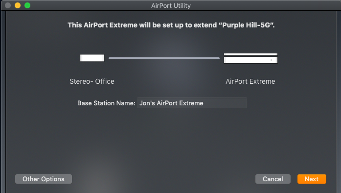 I then tried to "Extend" the existing network in Airport Utility. Again, doing this in the house much closer to the Netgear router and connecting the two via cable. Airport Utility then flashes the amber light and also displays a Red dot with a number 1 in it. I'm not sure what the Red number 1 indicates... I've never seen this before.