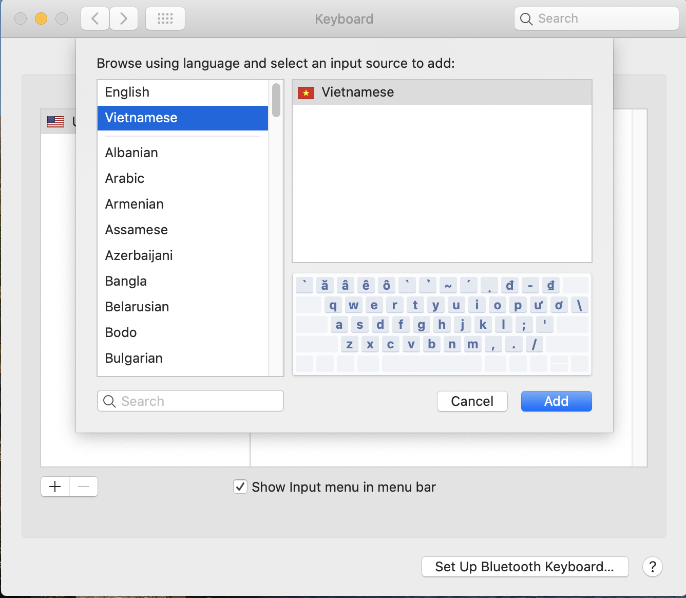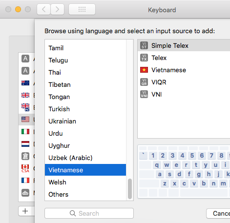 I can’t find telex keyboard (Vietnamese) on MacBook