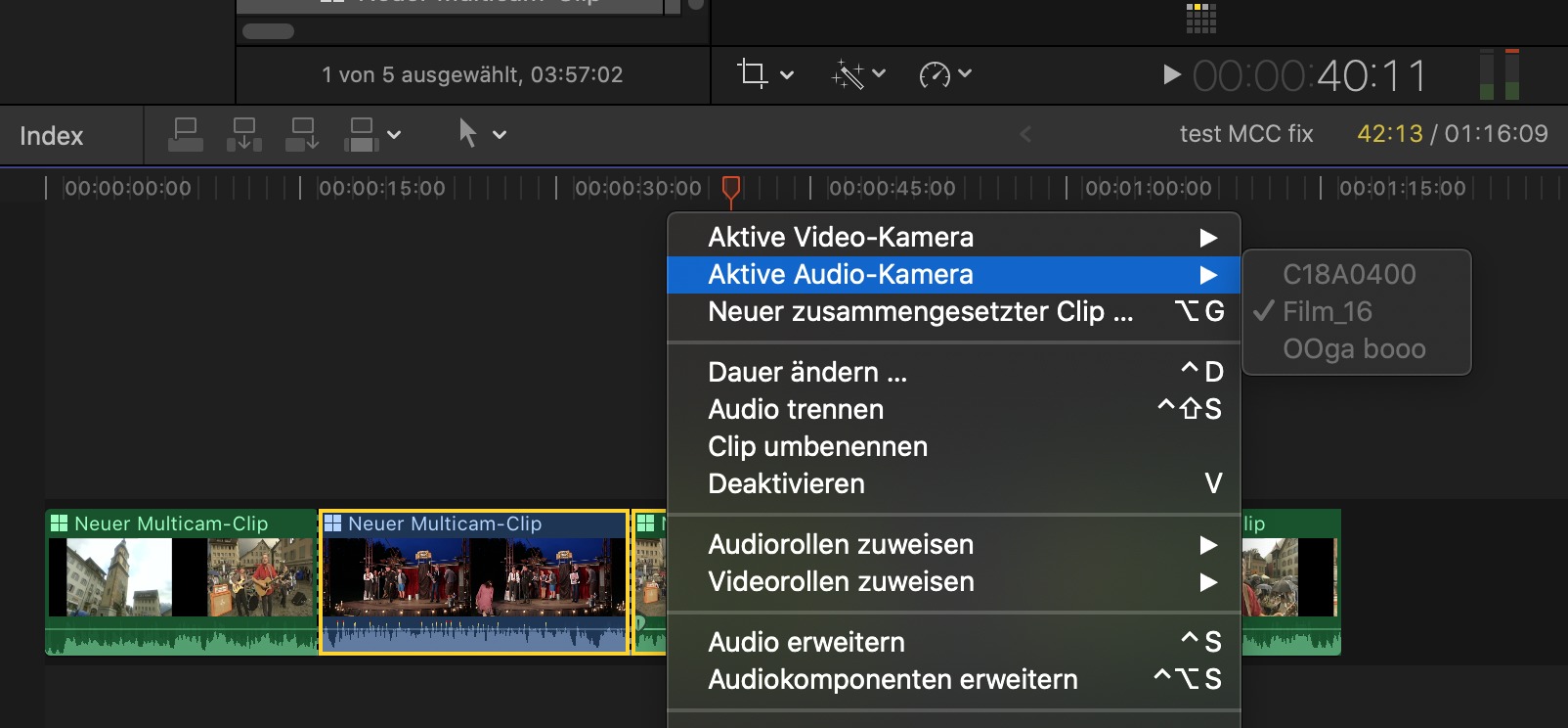 FCPX: how to get rid of the Camera Audio and have the 'main' Audio back after erroneously hundreds of short camera angel cuts? Without repositioning on each cut and chose the correct audio file as for the underlaying sound? This after having someone cut a multicam file erroneously with underlying the camera-audio of the cameras an do so losing the mixed and mastered 'real' musicfile. (we learned it, doing it the right way, so pls. no lesson on that part). But the already cuttet Videos, done by the musicians after their taste (and they are no longer here in the studio), we would prefer, not to cut for hours and hours all over again.