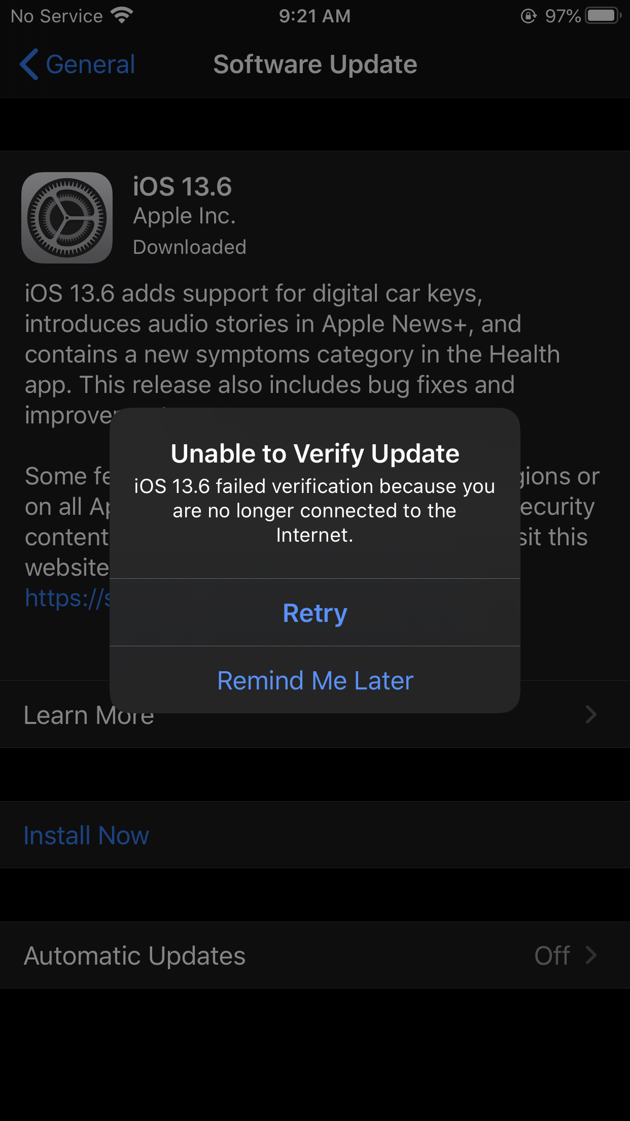 When i am installing the update Showing the Your no longer connected to the internet
