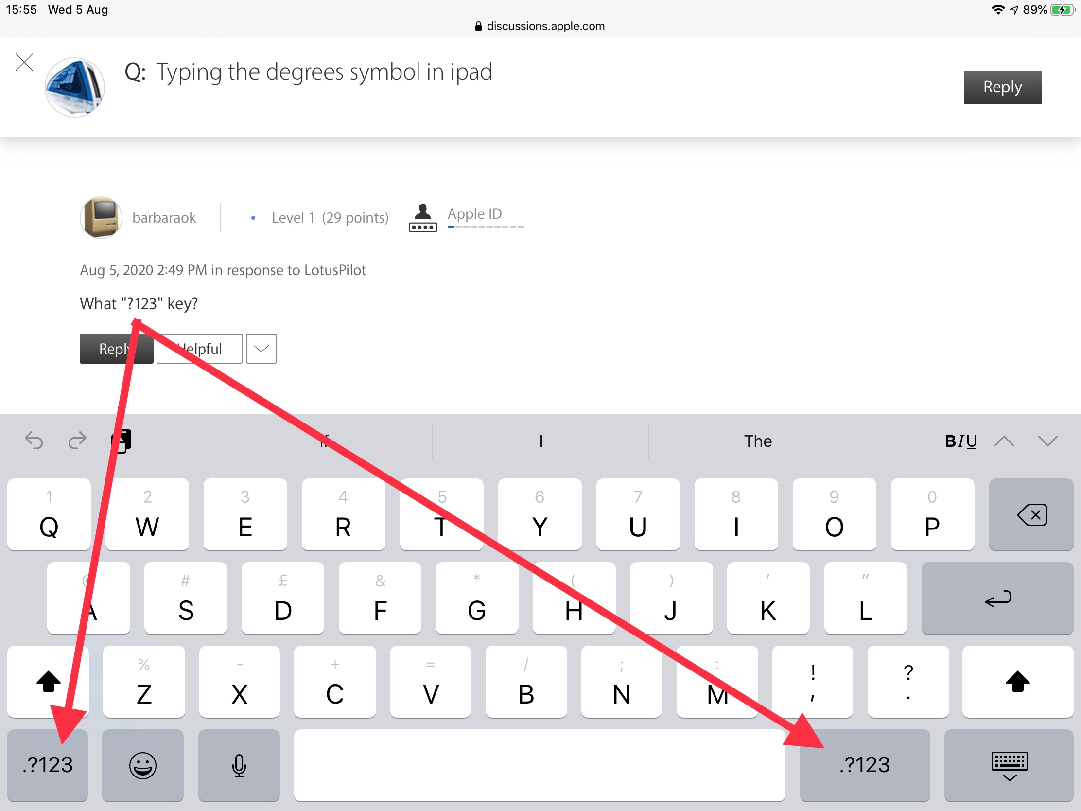 How do I type the degree sign, a superscript 0, in the iPad soft keypad?