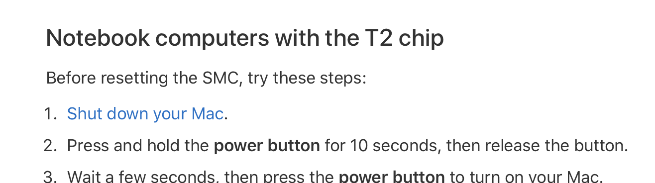 shows the SMC reset procedure. NOTE!: It is important to use the instruction set here: