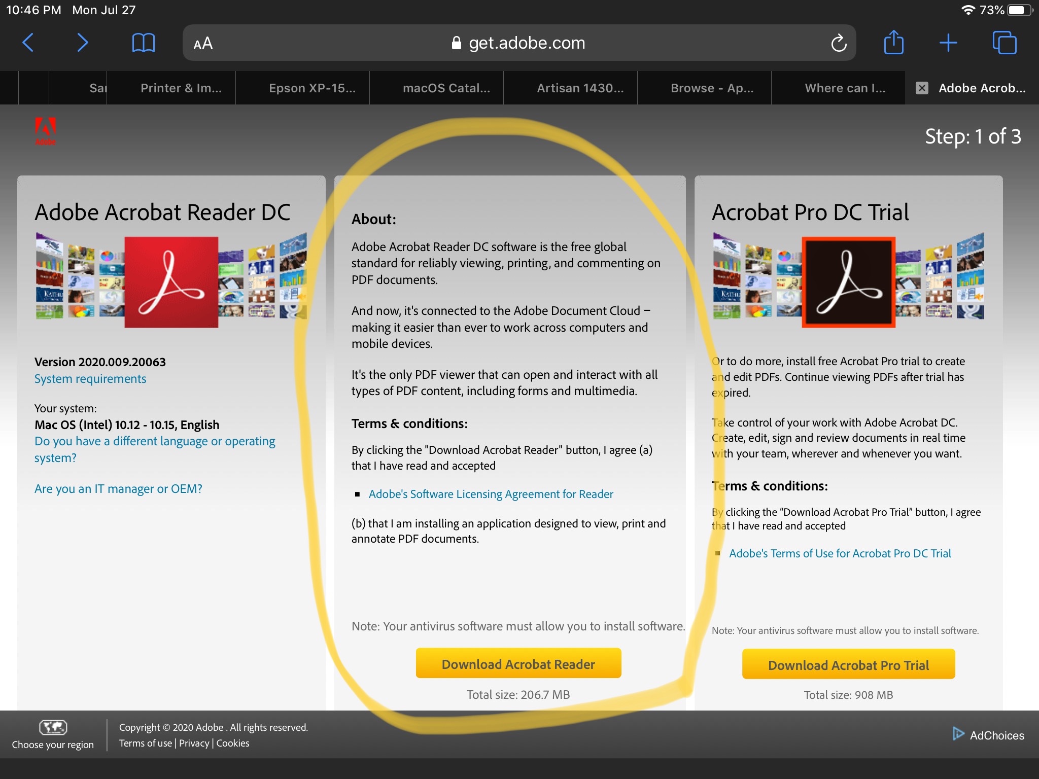 Sorry, but when I go to 'Download Acrobat Reader' it goes through to the free trial download?