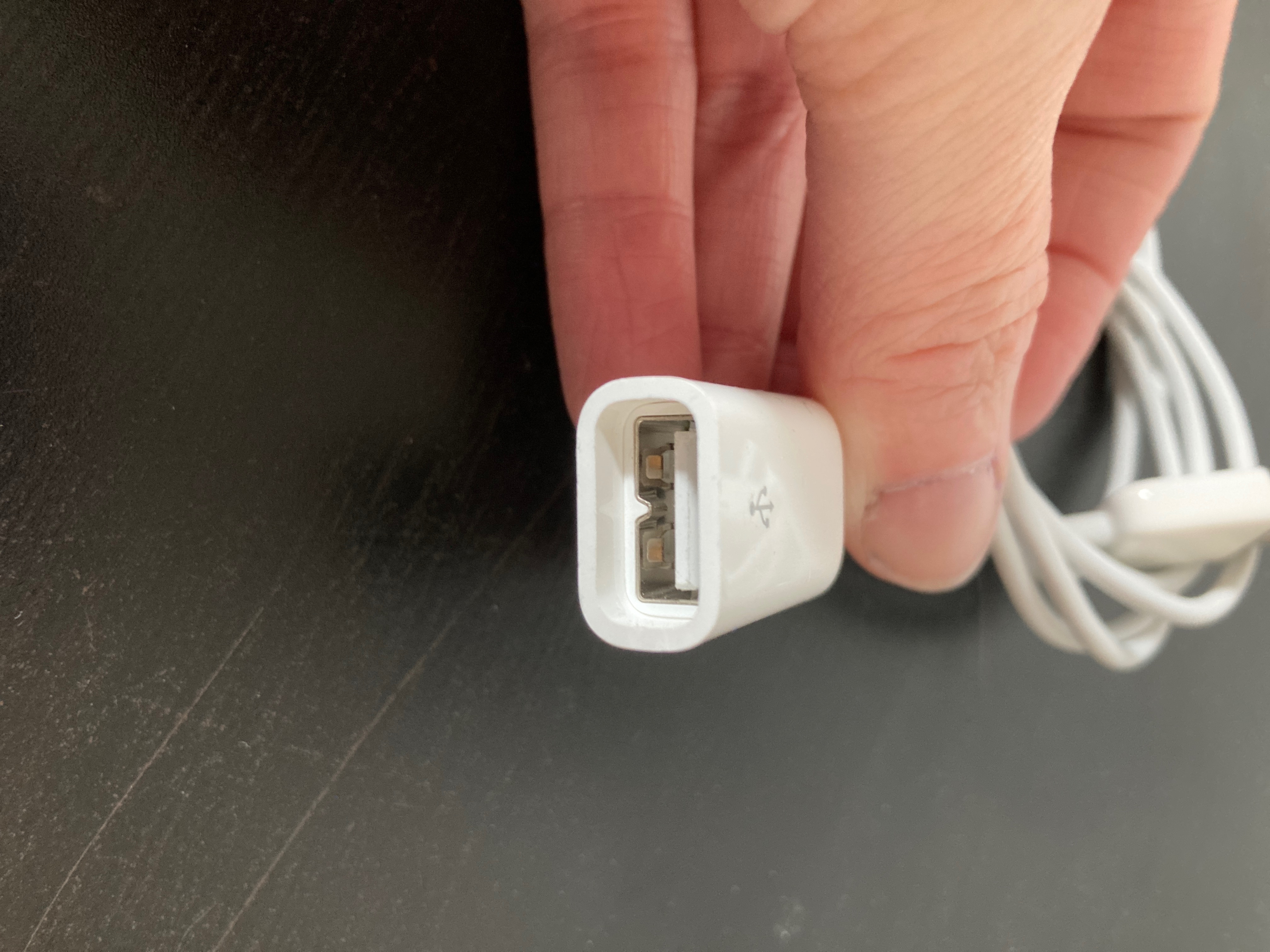 It is a very old Apple USB extension cable from a very old Mac to extend an old style Apple USB keyboard. For some reason Apple made their very old USB keyboards & extension cables with that little protrusion. I've taken a pair of needle nose pliers and flatten the protrusion just a bit to allow it to work with standard USB devices. The fit may still be a bit tight though. Otherwise you should just recycle it.