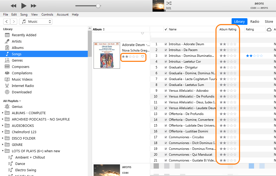 - note that both the Rating and Album Rating columns are displayed (A.). This will become relevant in a minute*