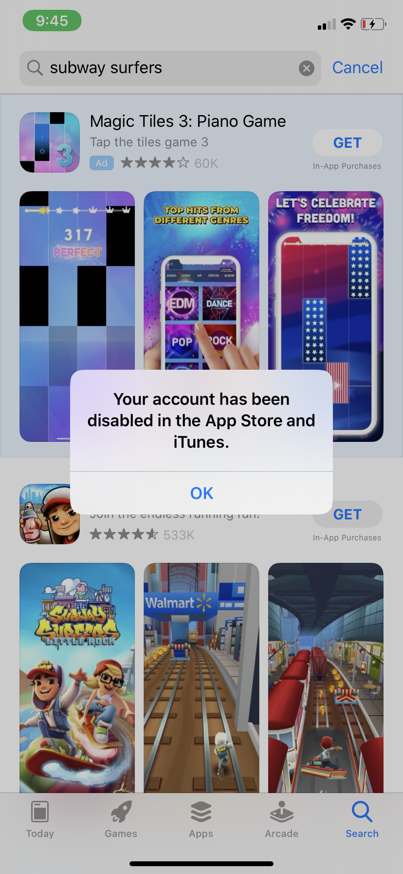 If you see a message that says "Your account has been disabled in the App Store and iTunes," there might be a problem with the payment method that you have on file.