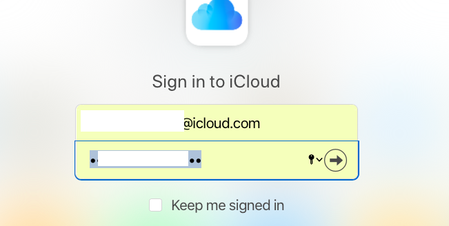 Then enter Apple ID and password manually ( if iCloud Keychain is set up the credentials will fill up automatically ) .