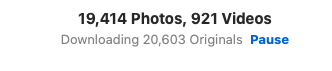 But it is stuck at the 20,603 number and hasn't moved at all. The only way I can get it to decrease is by choosing a specific video or photo and that forces the original download for that specific item. So I can do this one at a time -- obviously with that many photos/videos, that is not scalable.