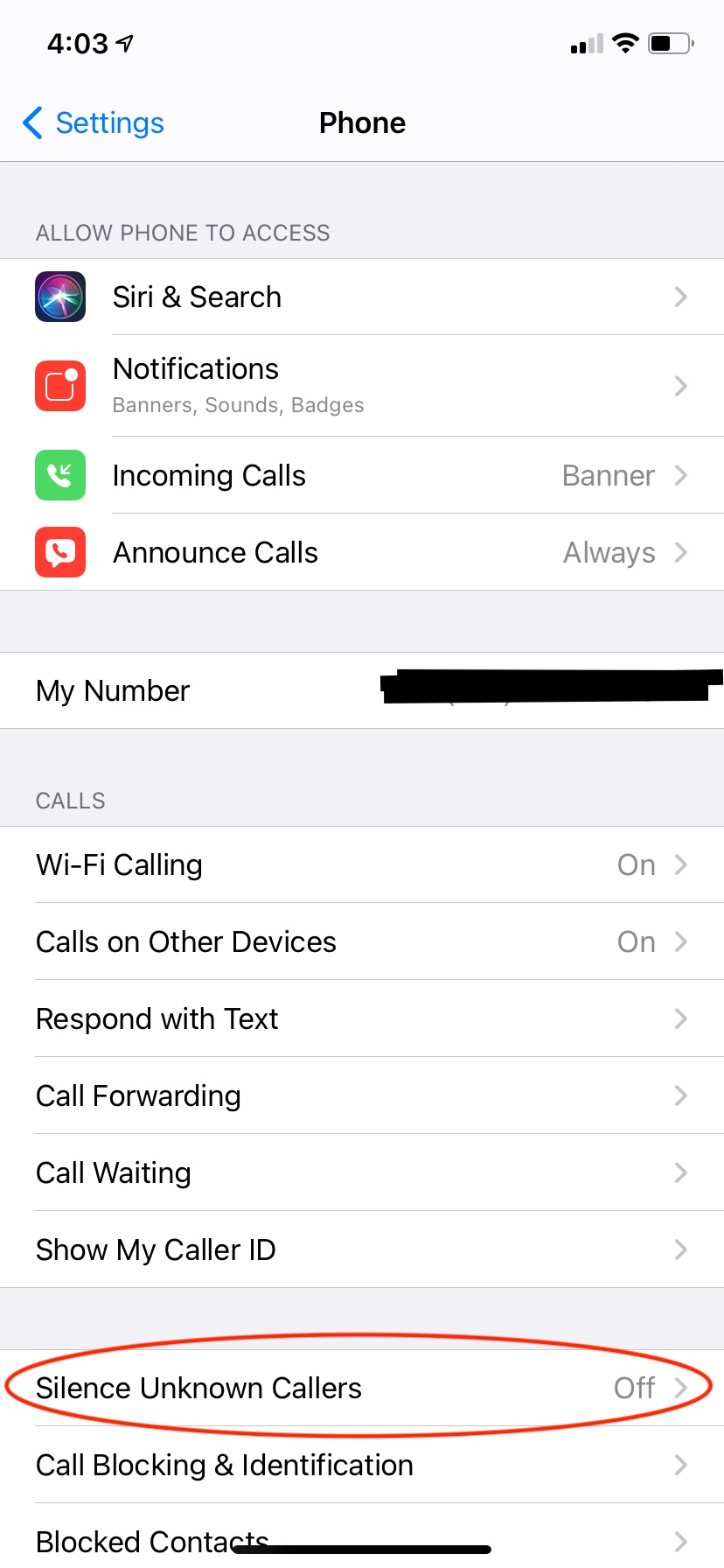 I first tried the "Silencing Unknown Calls." But that wasn't the problem.