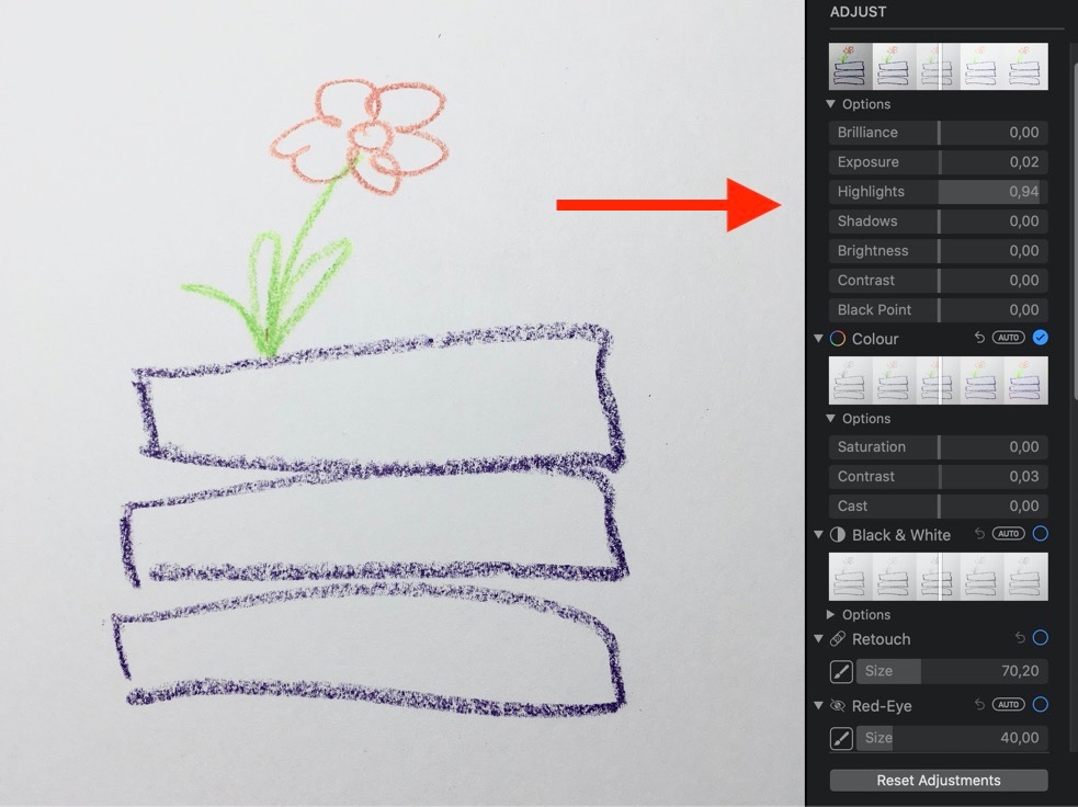 My photo of an illustration has a light grey background that should be pure white. Can I change this in "Mac Photos"? How?