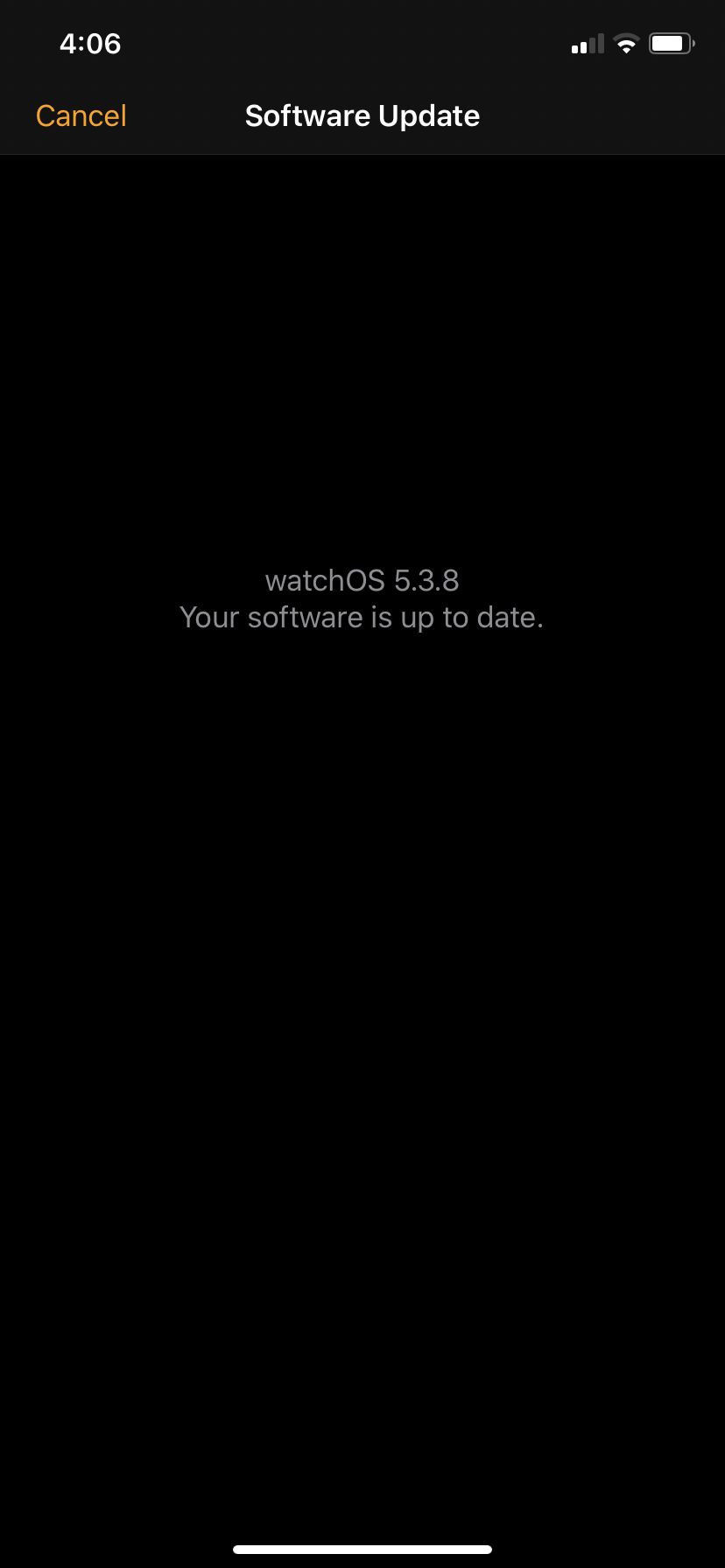 I've been unable to pair my Series 1 apple watch ever since I got a new iPhone 11. Every time I try to connect, I am told to update the apple watch software, even though it is already updated to 5.3.8. There is no button to further proceed (only a "cancel" button) after checking if my software is up to date. My only option from there is to "exit and reset watch" after which my phone unpairs from my apple watch. I was unable to disconnect my apple watch from my old iPhone before trading it into the Apple store, so I'm wondering whether that has to do with the issue. I already tried turning on & off my phone and my apple watch as well as resetting factory settings, with no help.