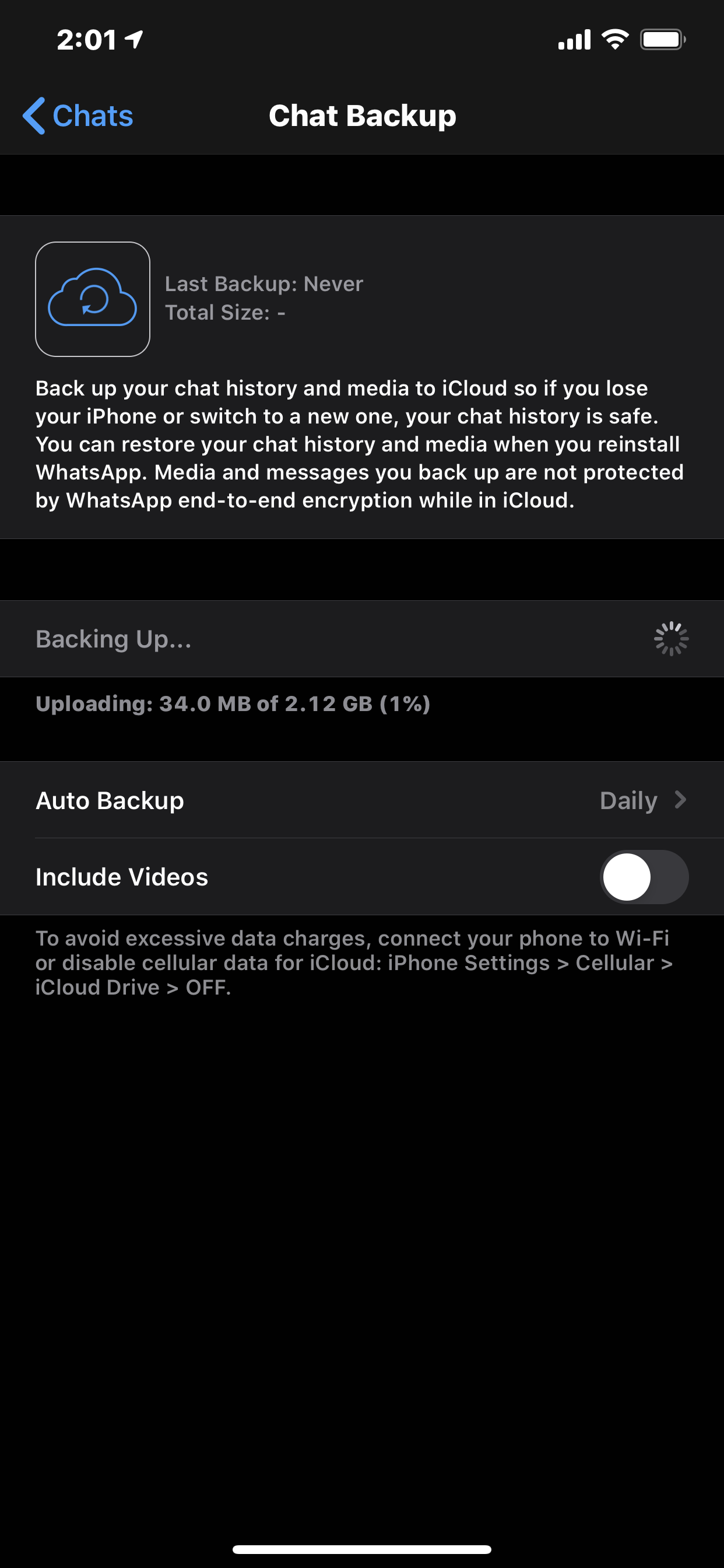 If all of the above conditions are correct -- stop the backup, force restart the phone, start the backup again.