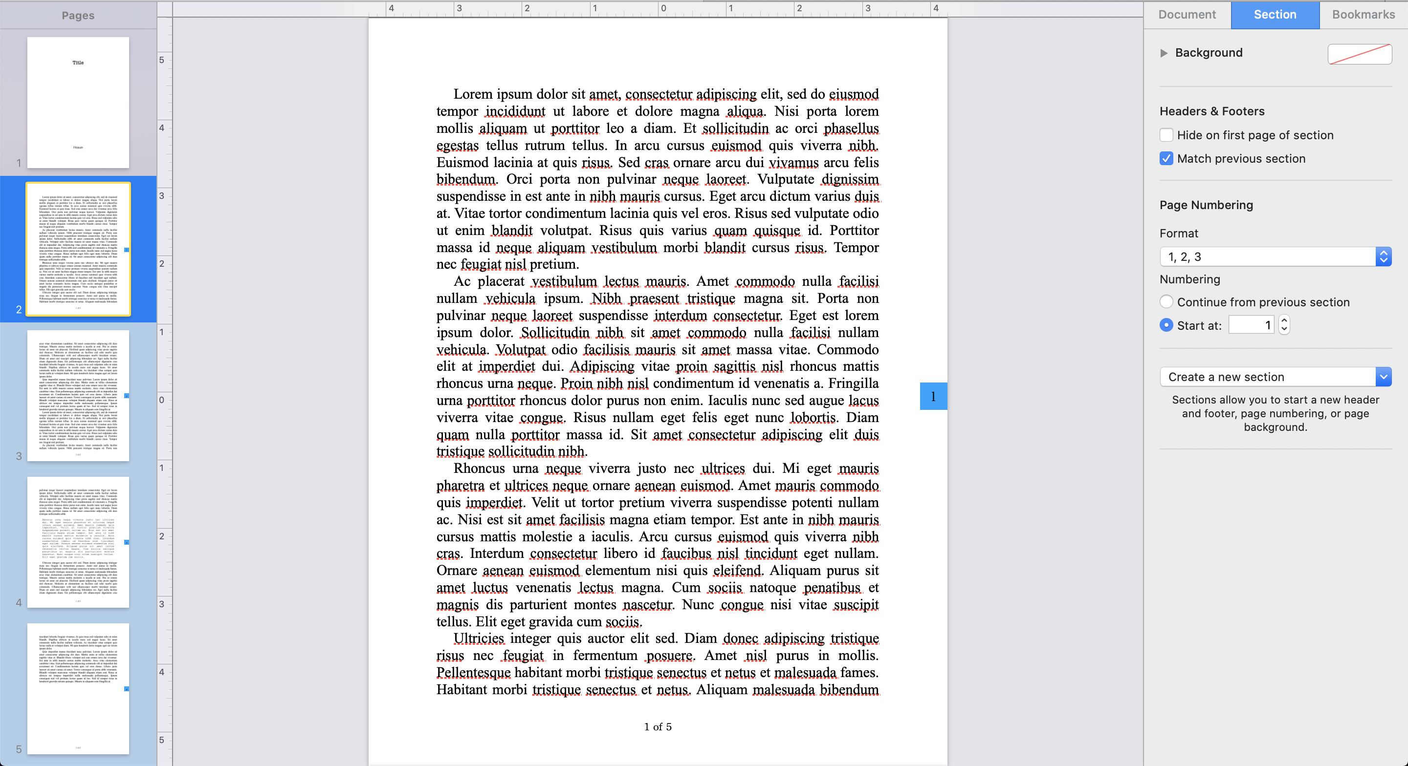 You can, however, set the second section's page numbering to either "continue from previous section" OR to ignore the previous section, and start at Page 1.