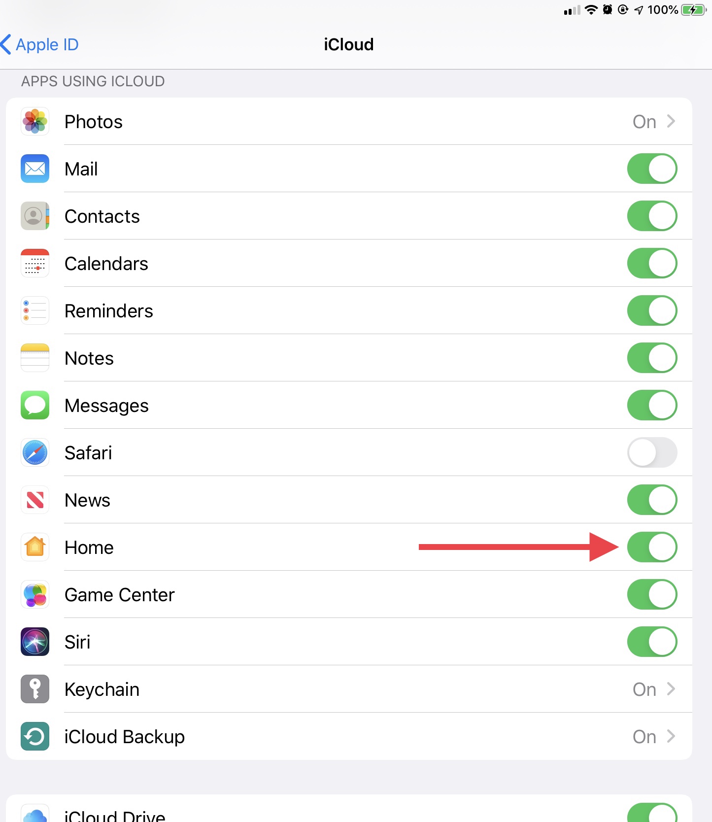To turn on home, go to Settings > Your Name > iCloud > Home, as shown below: