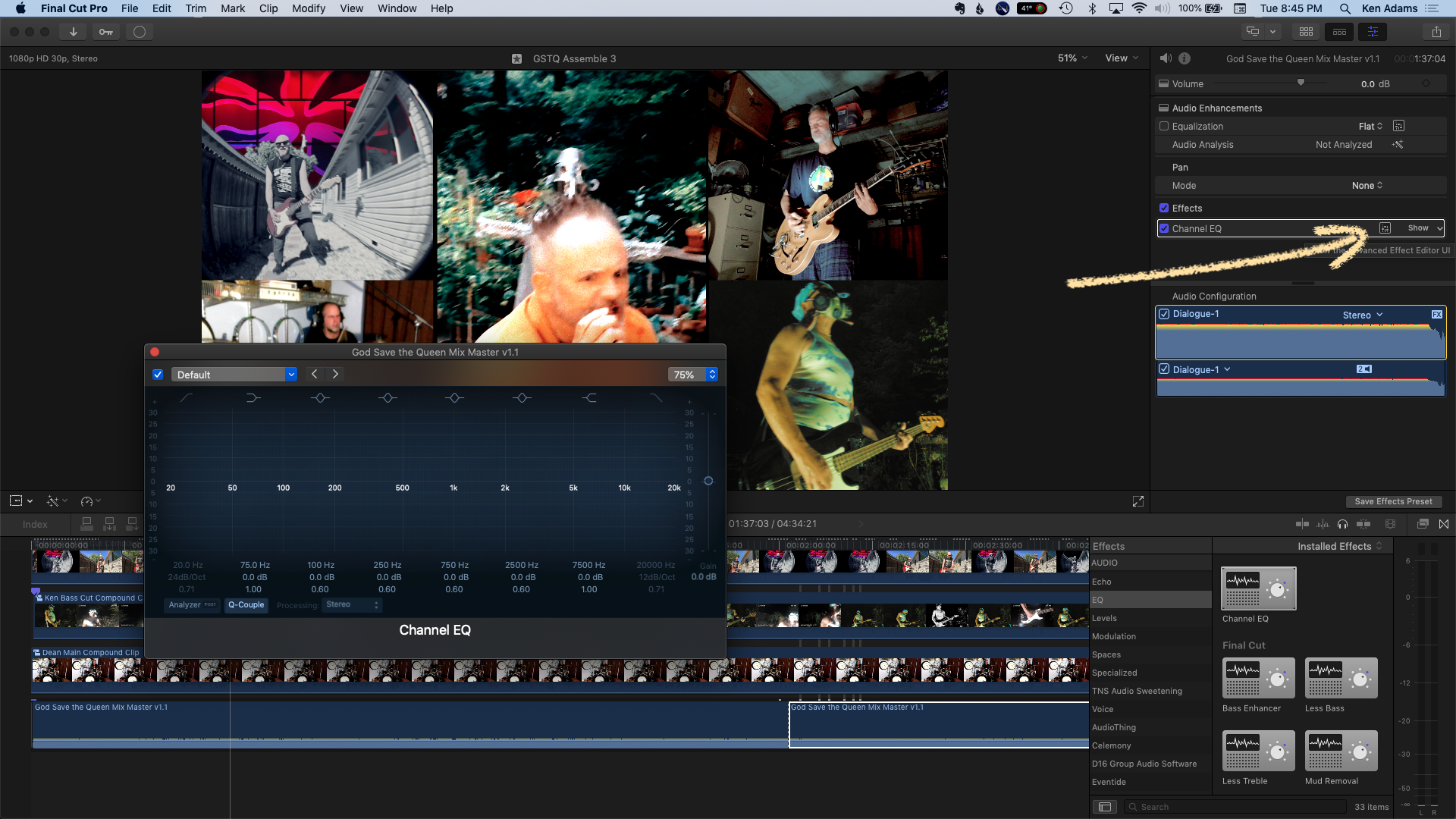 When I drop an audio effect (EQ for example) on an audio clip in the timeline, how do I access it's controls?