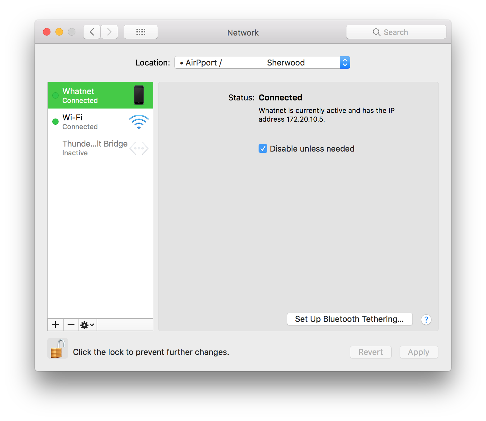 My Mac is network connected through my home Wi-Fi network through the interface "Wi-Fi".