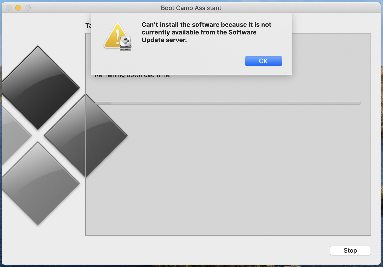 "Can’t install the [Windows Support] software because it is not currently available from the Software Update server"