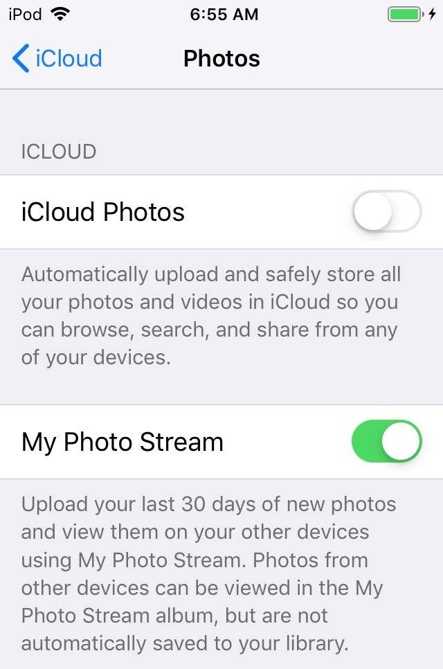 Please note that my use of all caps below is not mean to be snarky. I am trying to emphasize what I’m seeing. The bottom line issue I am trying to address here is that the option to select My Photo Stream on either iOS device DOES NOT EXIST.