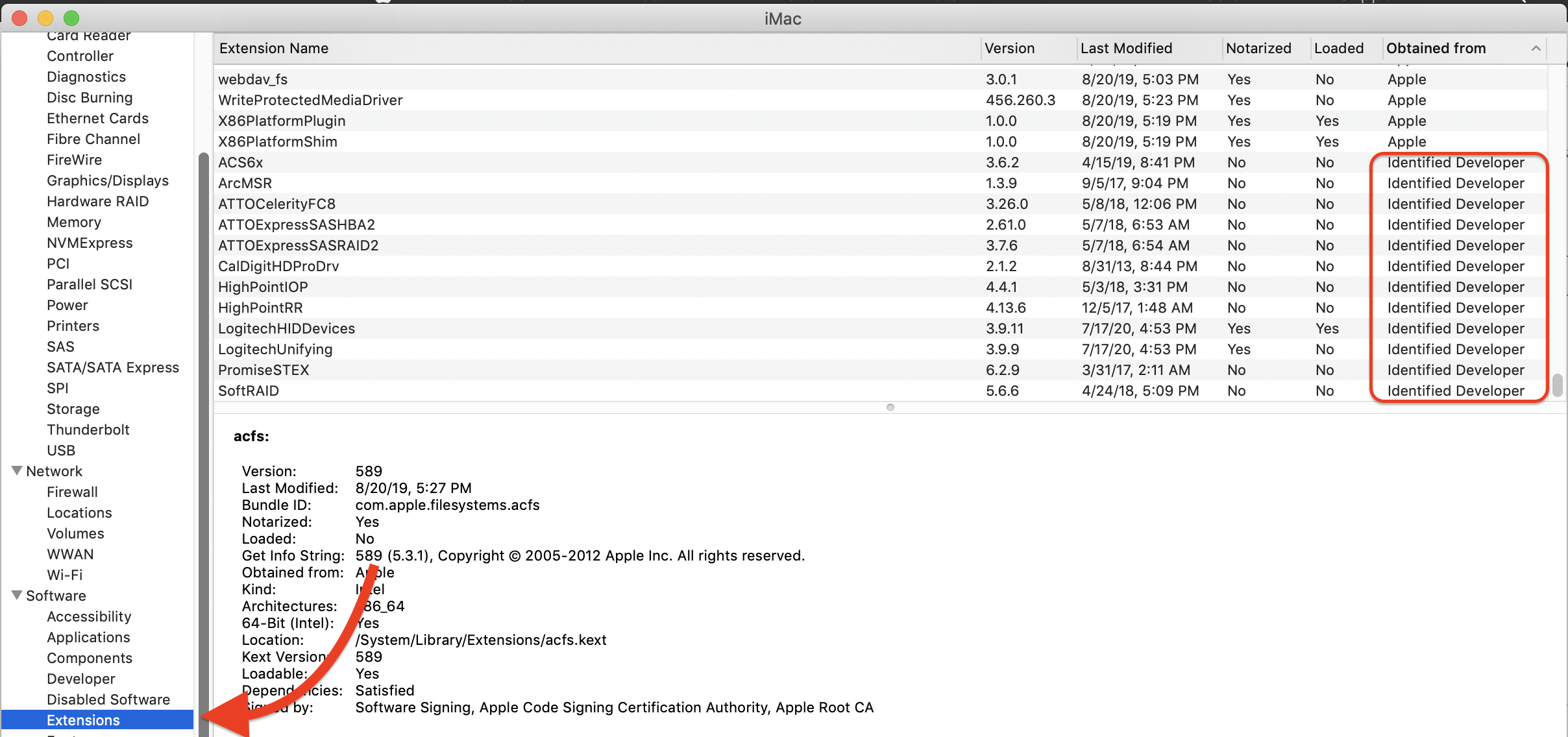 Received note about legacy system extensions with system update. How do I know what has a legacy--Macbook Pro.