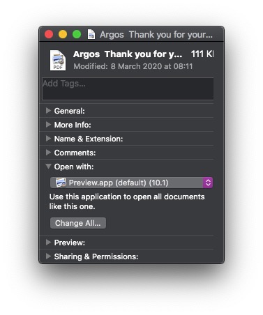 Acrobat has taken over as default document reader. How do I get Preview to be default again?