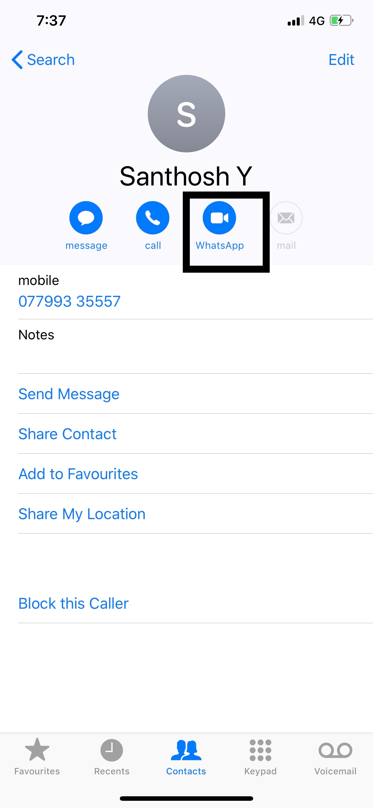 im Using iPhone XS . I’m not able see WhatsApp messaging icon In the contact details of any contact save in my phone.