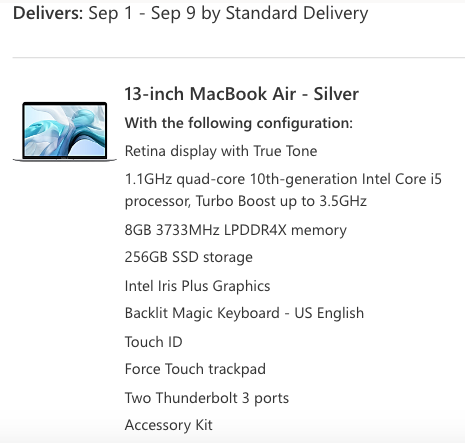 model number for MacBook Air 13" 2020