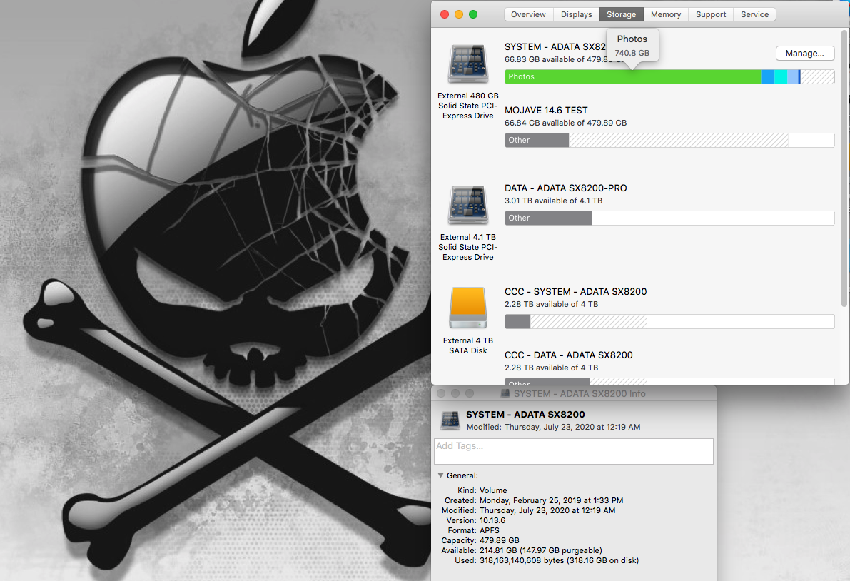 About This Mac - Incorrect storage space categories report Photos - Multiple Volumes or Disks