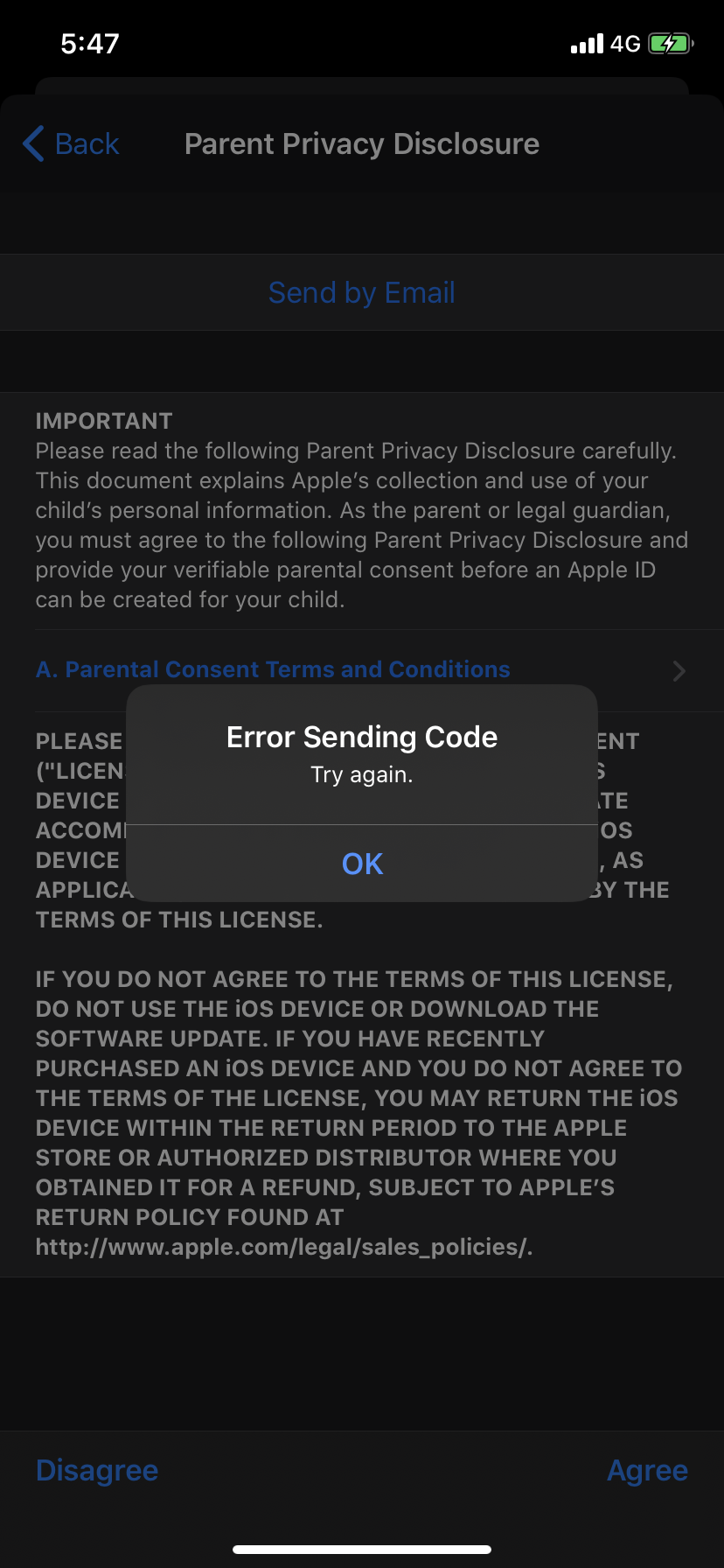 And I have tried to create a new apple ID on my kid's device, it failed neither.