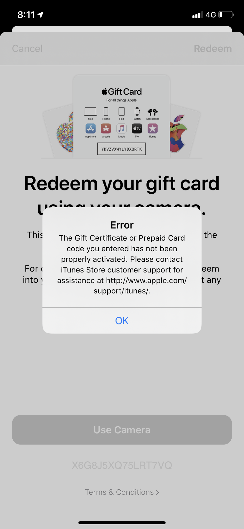 I buy iTunes card through the website, but when I wanted to fill in the account, I could not do that. What is the problem?