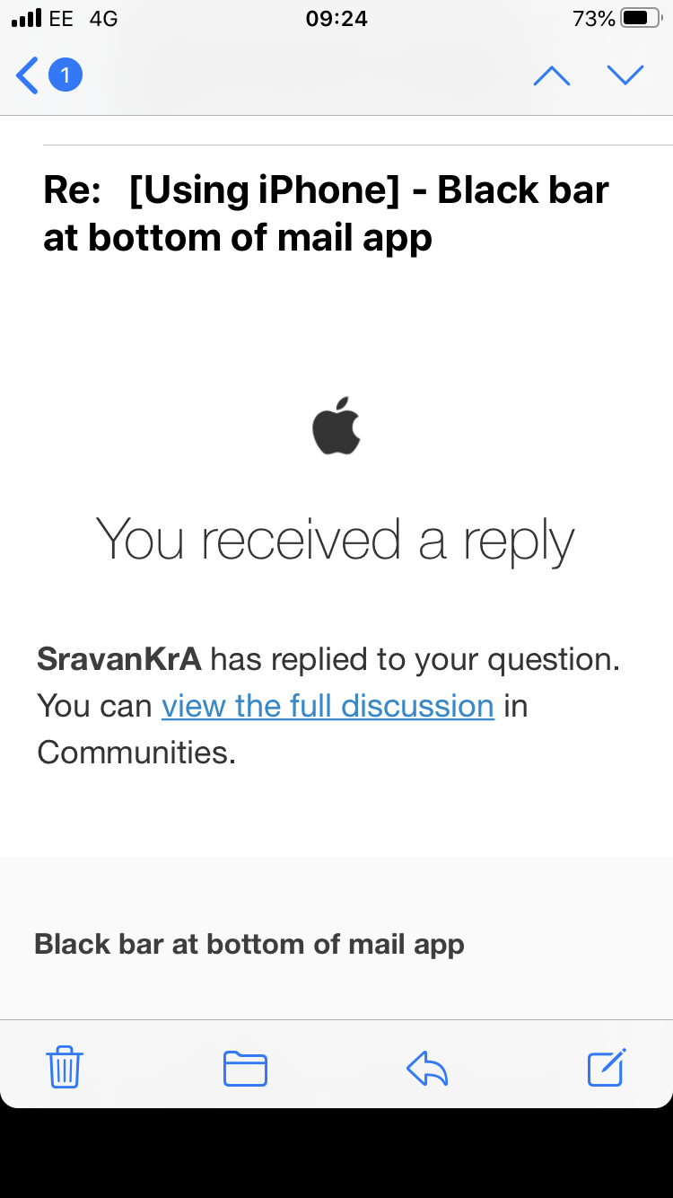 my email display started showing a black bar across the bottom, so the displayed list of emails is effectively shorter. the display is fine when I first open the mail app, then it shrinks up from the bottom pretty quickly, leaving a black space at the bottom.