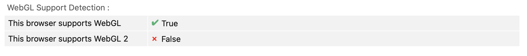 And WebGL2 is also True if I enable in Developer > Experimental Features menu.
