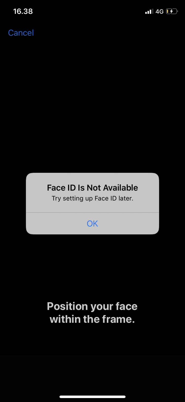 My face ID didn’t work. When i try activate it it doesnt find my face. Then it says ”face id cant be used” ”try again later”