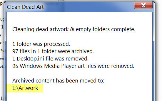 YOU SAID: CleanDeadArt preserves Folder.jpg images in folder that have media items. This is also why I use a structure that has one album, movie, TV show, audiobook, etc. per folder. I get a visual representation of what a folder contains.