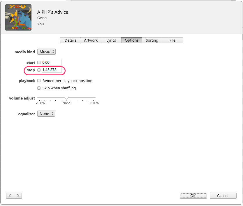 Select a song that stops earlier than it should, press Ctrl+i to get Song Info. Select the Options tab, then delete the stop time and click OK. This should reset the stop time to the full duration of the song.