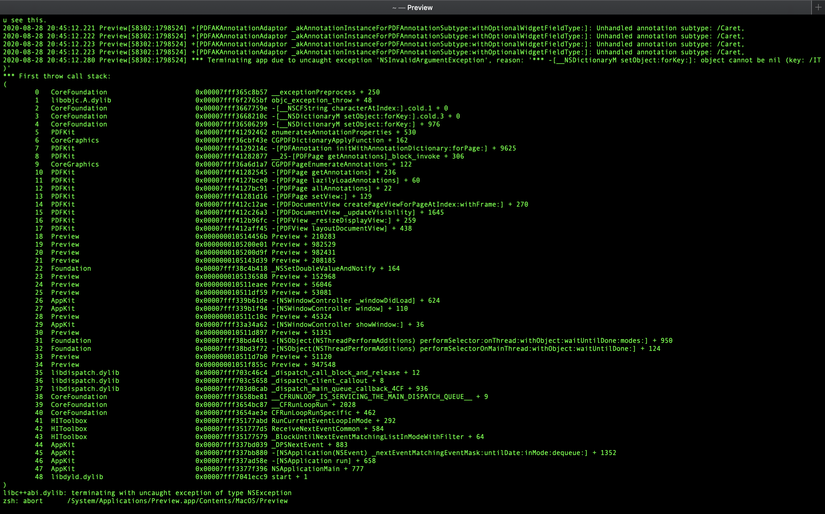 It crashed suddenly when it was used to view a PDF with annotation created by other PDF editor.