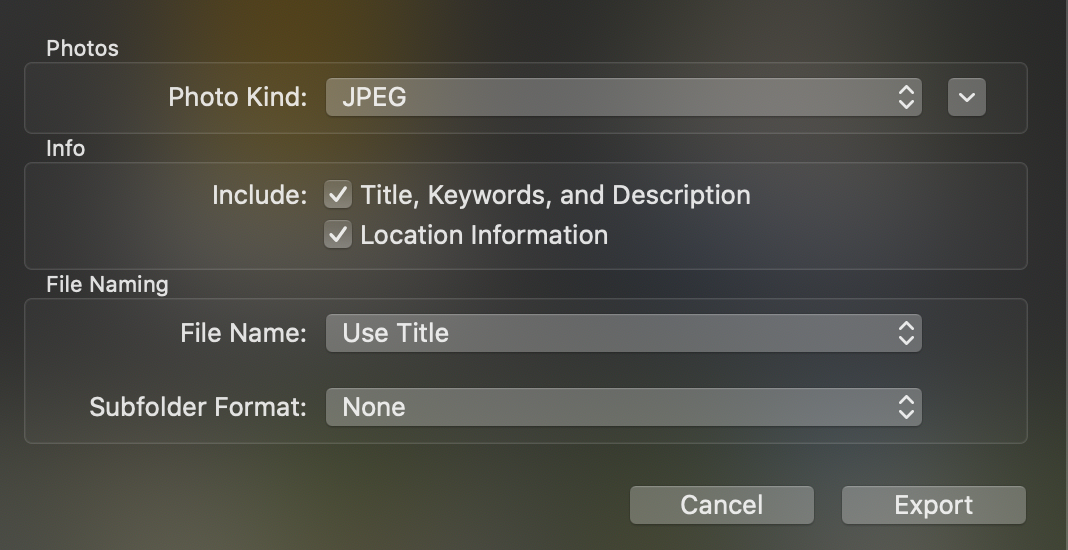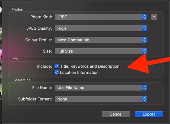 I enter a description for a photo in Photos in the description field. Export it as .jpeg. Description shows up in flickr and preview in the caption/description field in IPTC. But, if I import that same file back into Photos, the description field is blank. Searching on text that's in the caption/description field doesn't find the photo. Is there a setting where I can map the import of IPTC caption/description into the description field?
